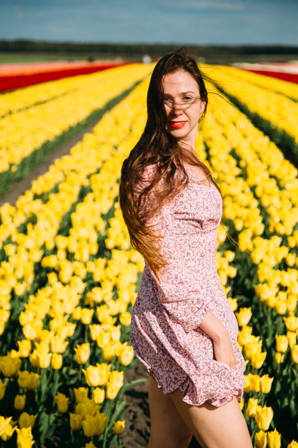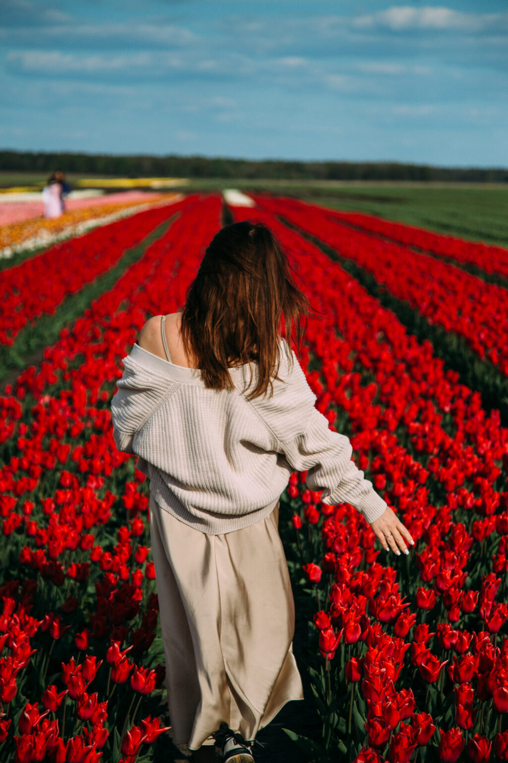 На тюльпановом поле есть много зон и локаций, где можно устроить фотосессию. А можно просто прогуляться по цветочным рядам, идти вперед и вперед, ведь поле бесконечное, до самого горизонта. Уйти подальше от туристов, оказаться наедине с этим чудом природы, насладиться красотой и ароматом цветов.